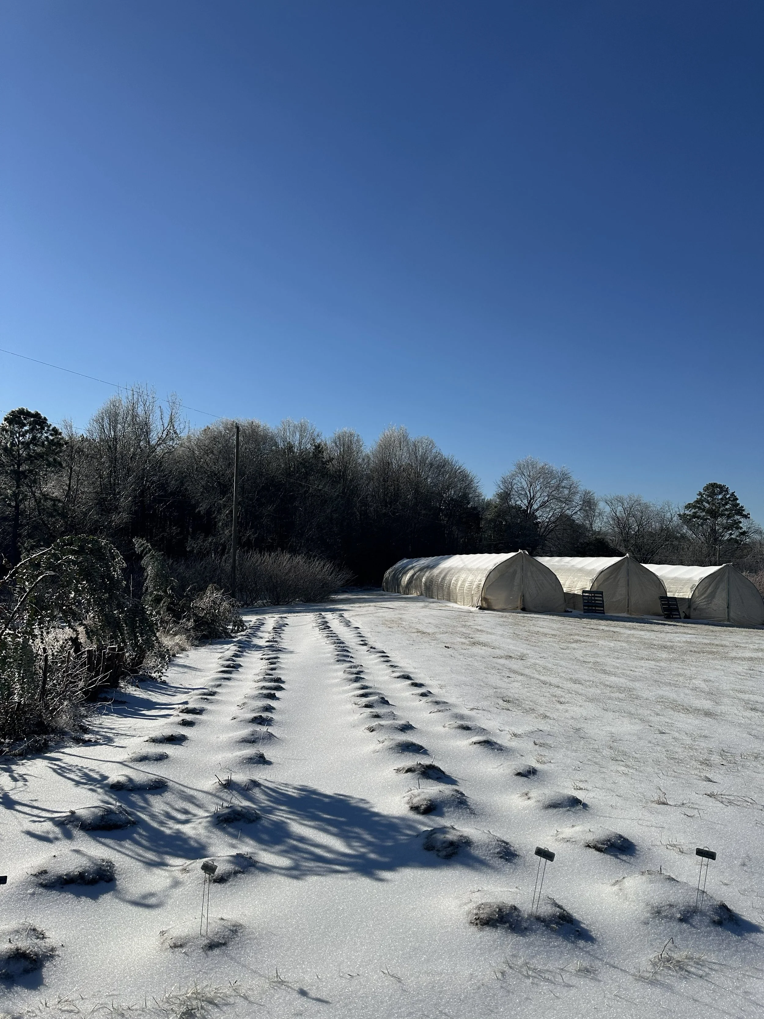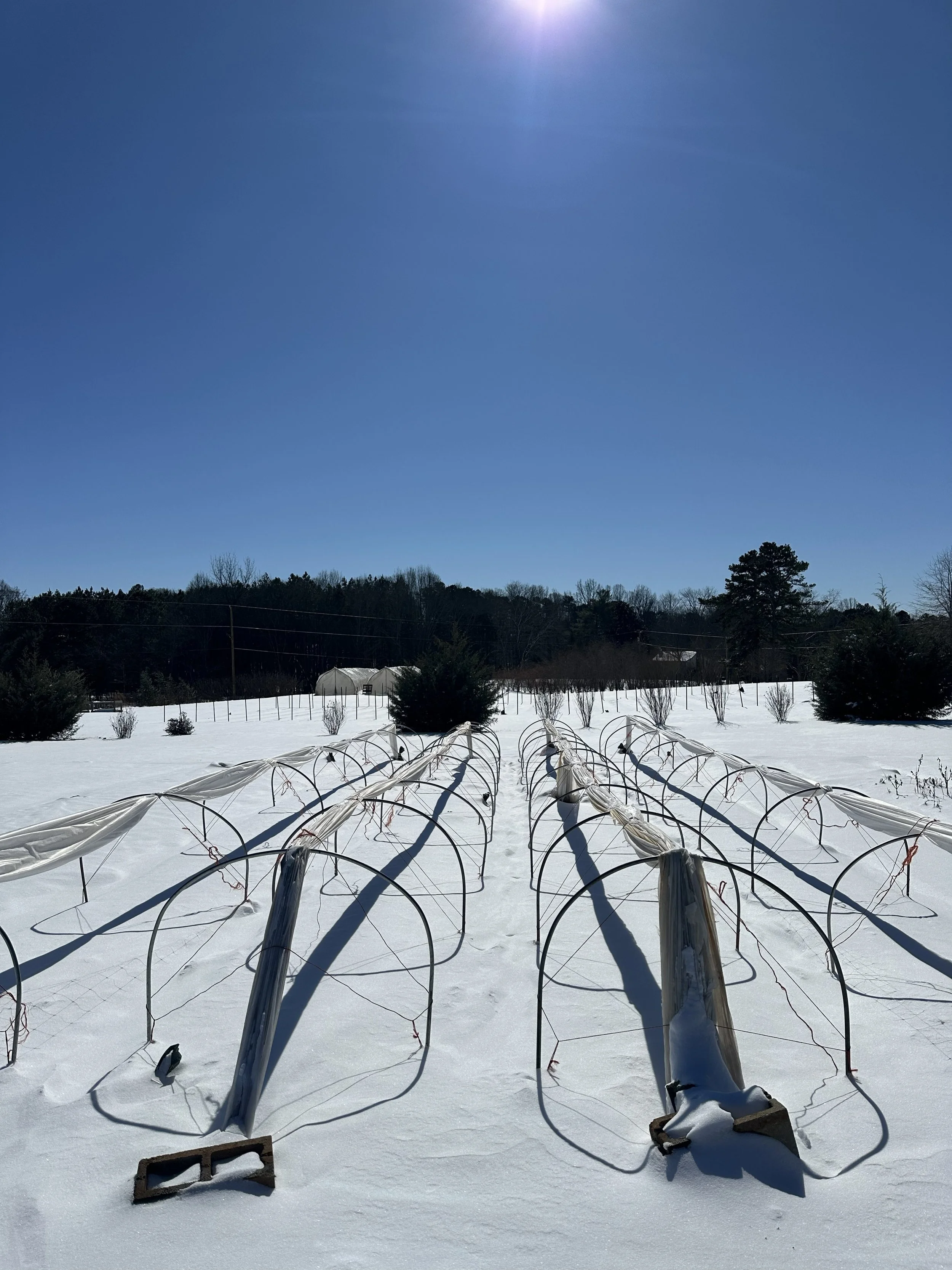 What a cold ending to January here in North Carolina. It is hard to believe that the first month of 2026 is already in the books. Over the past month, we have weeded and mulched our Peony beds. The Anemones, Ranunculus and Tulips are sprouting! The first flower to bloom in the tunnel was an Anemone! The Sweet Peas are also thriving in the tunnel beginning their elegant dance up and through the wire netting. Out in the field, the Hardy Annuals are growing and hopefully surviving the extreme winter weather - cold, ice and snow. Flowers will be blooming everywhere before we know it.