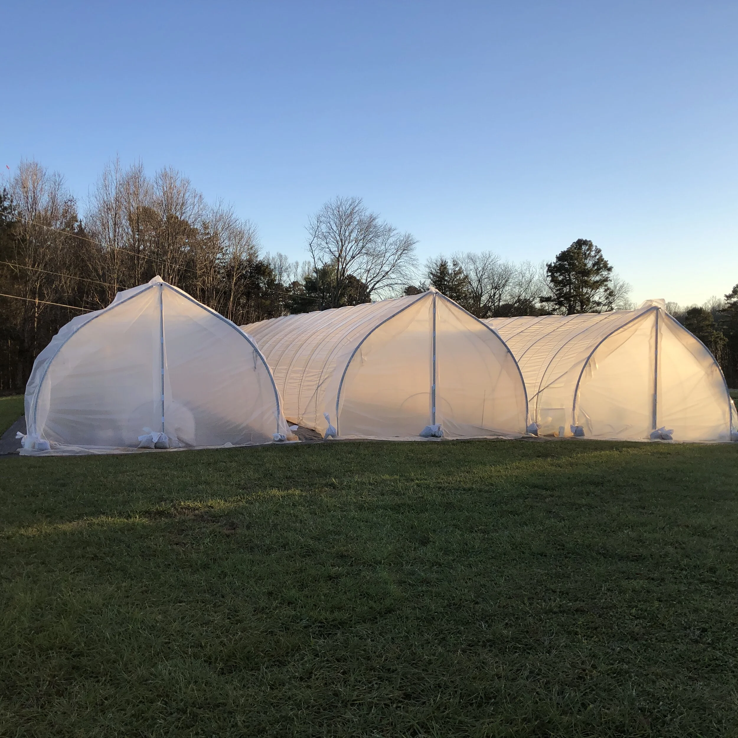 An adage commonly shared among seasoned farmers (especially flower farmers) is the phrase “Everything grows better in a tunnel”. In the first 2 months of using the tunnels, we have discovered how warm the inside of a closed tunnel can be during the day. So one of our daily chores is to ensure the sides are properly open/vented by the time the air temperature reaches above 40 degrees F, especially on a sunny day. Then we must remember to close the tunnels in the evening if the night temperatures drop below freezing. Growing in the tunnels are varieties of Ranunculus and Anemones as well as Campanula. The plants are doing well in the controlled environment of the tunnels. We are eagerly awaiting their first blooms in late winter.